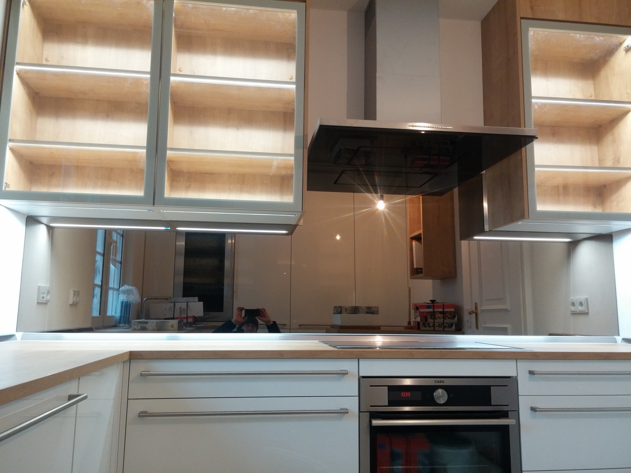 Aufgrund der gläsernen Rückwand lässt sich das Foto-Verbundglas mit Silikon verkleben und befestigen. Es ist blickdicht und lässt sich auf Wunsch mit Steckdosenbohrungen ergänzen.Damit Sie genau wissen, wie Ihre Ideen in Ihren Räumen wirken, kommen wir gerne mit anschaulichem und umfangreichem Mustermaterial vorbei. Gerade um die Farbwirkung zwischen Tages- und Kunstlicht zu vergleichen, ist das Arbeiten mit Glasfarbmustern unumgänglich.Vertrauen Sie auf unser Fachwissen, was die Verarbeitung von Glas in seinen verschiedenen Qualitäten angeht. Unsere Produkte überzeugen hinsichtlich Material, Design und Funktion. Individuell gestaltete Glasflächen sind bei uns nicht mehr Zukunft, sondern Gegenwart. Auch Bäder lassen sich mit unseren Lösungen individuell gestalten.